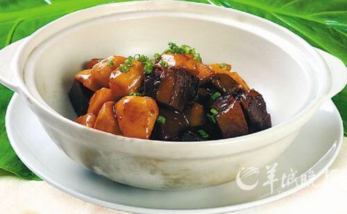 これは白酒に漬け込んだ豚ばら肉の角切りとジャガイモを素揚げにして醤油で炒め煮した料理。