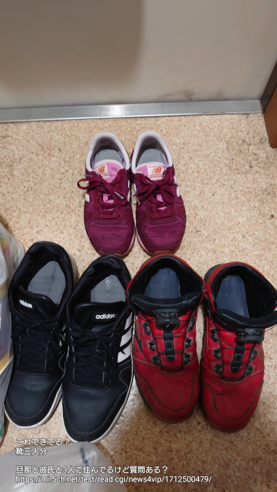 ごめんね、赤いのが旦那さんの作業靴だよ、安全靴か何か